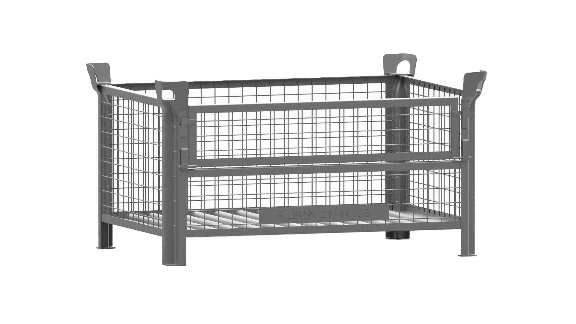 Der HESON-Gitterbehälter für Traglasten bis 1000 kg ist in seiner Konstruktion von Grund auf solide und stabil. Er ist erstmalig kompatibel mit unseren Modellen: 1520, 1510, 1505, 1562, 1565, 2163 und 2194. Er verfügt wie alle kranbaren HESON-Standardprodukte über ein TÜV-Zertifikat und ist mittels zertifizierter Krantraverse (unser Modell 1115) im vertikalen Zug kranbar. Die Wände aus Schweißgitter sind mit dem Eckpfosten und dem Rahmenwinkel verschweißt. Der profilierte Stahlblechboden liegt verschweißt in einem umlaufenden Winkelrahmen. Die Rollbahnfähigkeit des 17/51 kann über eine untergeschweißte Längskufe gewährleistet werden. Der hohe flexible Einsatzbereich in der neuen patentrechtlich geschützten W-Pfosten-Ausführung hat eine integrierte Stütze.