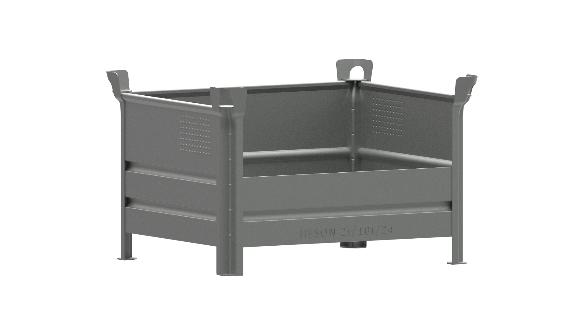 Die Heson-Triade: von der Traglast 2 t (1520) über 1 t (1510) und der leichteren Variante 0,5 t (1505) können die Modelle 1294, 1565, 1751, 2163 und 2194 untereinander gestapelt werden. Der hohe flexible Einsatzbereich in der neuen patentrechtlich geschützten W-Pfosten-Ausführung hat eine integrierte Stütze. Der stabile, rohrähnliche Wandumschlag oben, die stabilen Rundsicken im Wand- und Bodenbereich sowie das genoppte Labelfeld für die Frachtaufkleber, die sich von den Noppen leichter entfernen lassen, sind markante Merkmale der HESON-Triade. Alle Behälter sind standardmäßig in der Füllhöhe 500 mm und 200 mm, alternativ mit Gitterklappe (siehe Modell 1751), mit Längskufe, öl- und wasserdicht geschweißt, in roher, lackierter oder verzinkter Ausführung lieferbar. Alle HESON-Standardprodukte verfügen über ein TÜV-Zertifikat. Alle kranbaren HESON-Standardprodukte verfügen über ein TÜV-Zertifikat und sind mittels zertifizierter Krantraverse (unser Modell 1115) in vertikalen Zugketten mit Haken kranbar.