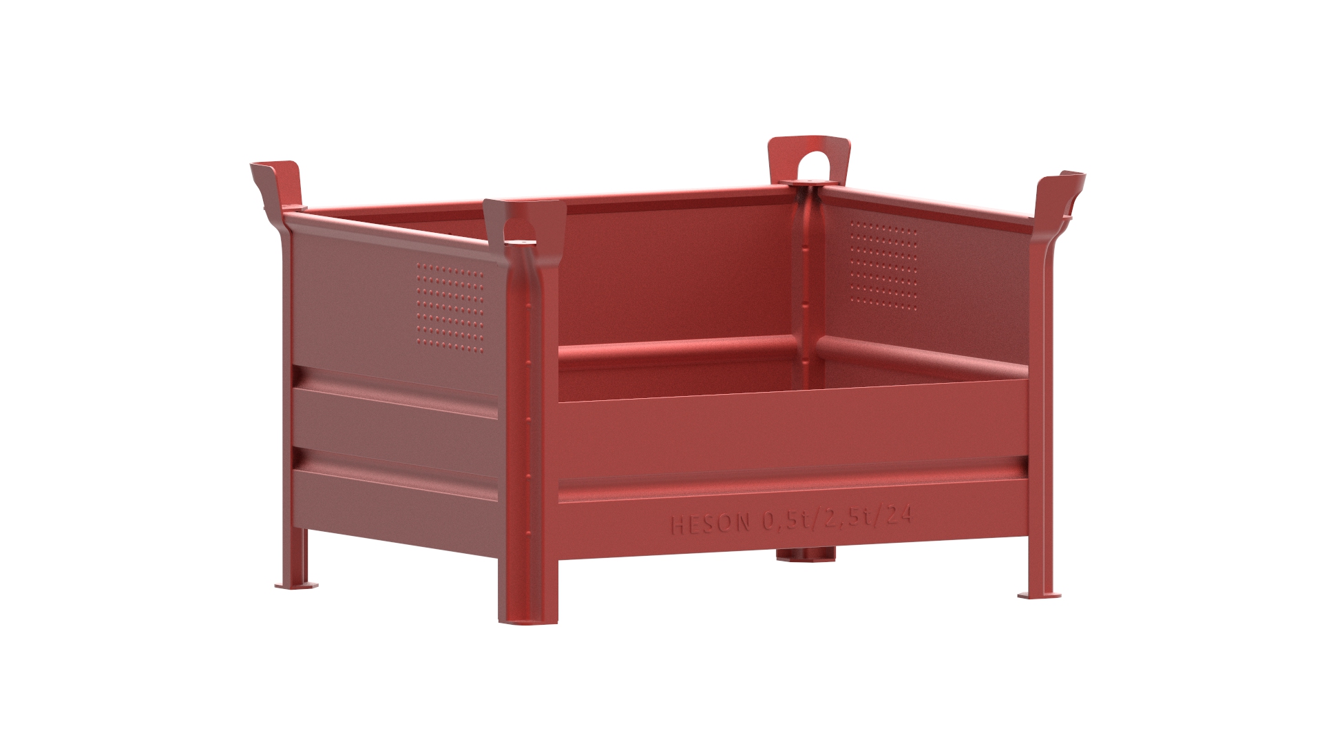Der hohe flexible Einsatzbereich in der neuen patentrechtlich geschützten W-Pfosten-Ausführung mit angekanteter Stütze. Der stabile, rohrähnliche Wandumschlag oben, die stabilen Rundsicken im Wand- und Bodenbereich sowie das genoppte Labelfeld für die Frachtaufkleber, die sich von den Noppen leichter entfernen lassen, sind markante Merkmale der HESON-Triade.