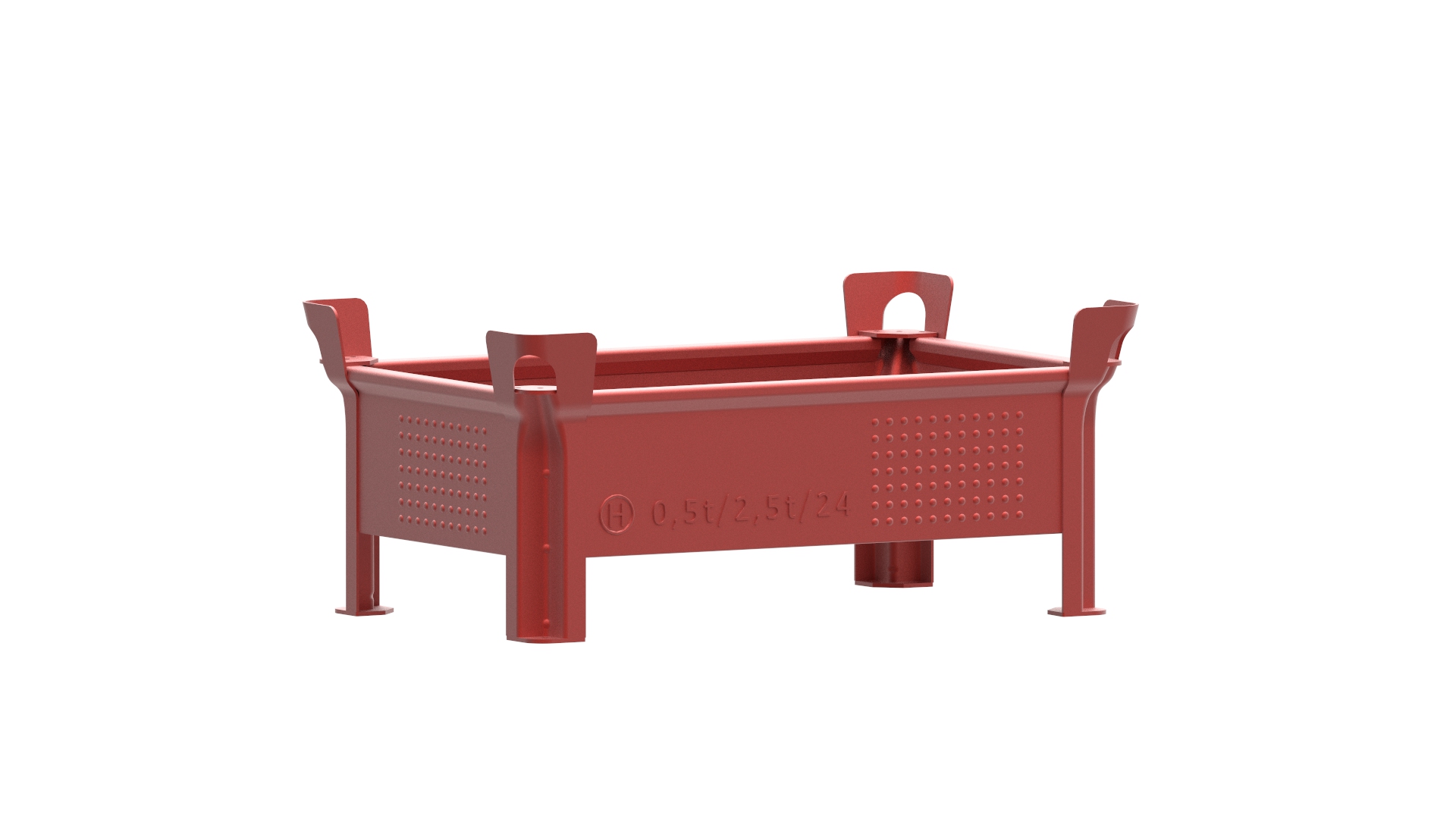 Der hohe flexible Einsatzbereich in der neuen patentrechtlich geschützten W-Pfosten-Ausführung mit angekanteter Stütze. Der stabile, rohrähnliche Wandumschlag oben, die stabilen Rundsicken im Wand- und Bodenbereich sowie das genoppte Labelfeld für die Frachtaufkleber, die sich von den Noppen leichter entfernen lassen, sind markante Merkmale der HESON-Triade.
