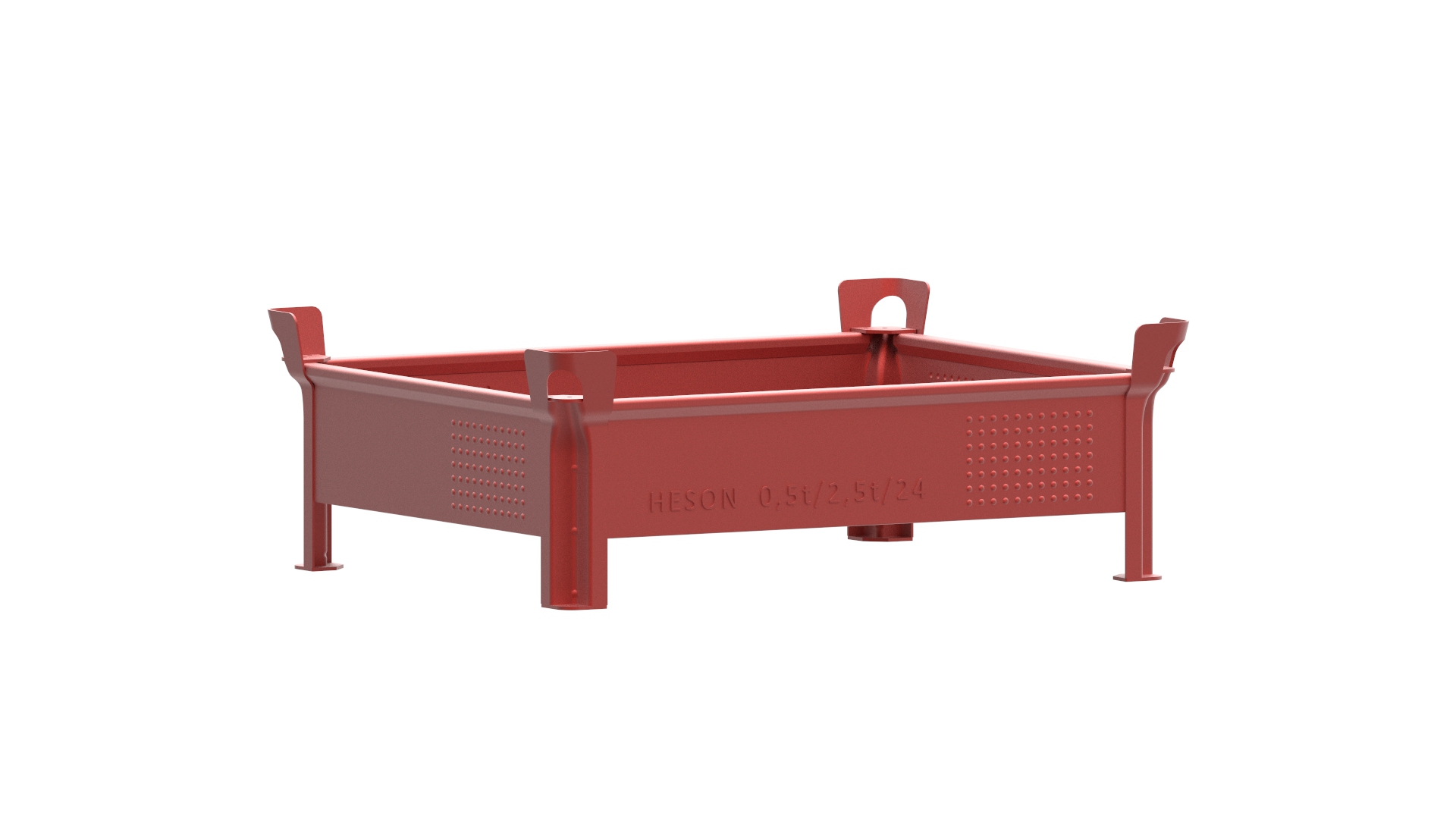 Der hohe flexible Einsatzbereich in der neuen patentrechtlich geschützten W-Pfosten-Ausführung mit angekanteter Stütze. Der stabile, rohrähnliche Wandumschlag oben, die stabilen Rundsicken im Wand- und Bodenbereich sowie das genoppte Labelfeld für die Frachtaufkleber, die sich von den Noppen leichter entfernen lassen, sind markante Merkmale der HESON-Triade.